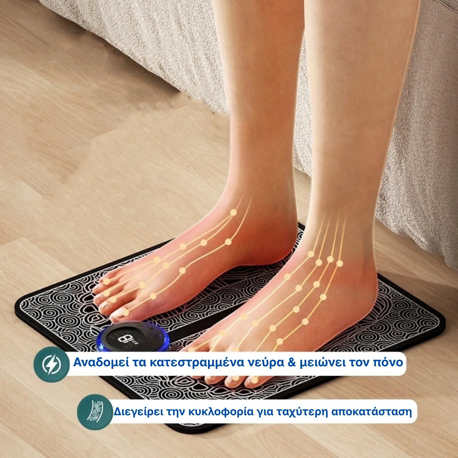 Ο μασάζ ποδιών IKEROS χρησιμοποιεί τεχνολογία NMES για να ενεργοποιήσει την κυκλοφορία του αίματος και να βοηθήσει στην ανακούφιση από τον πόνο, το μούδιασμα και το πρήξιμο – άνετα στο σπίτι, χωρίς φάρμακα ή επισκέψεις σε γιατρούς.